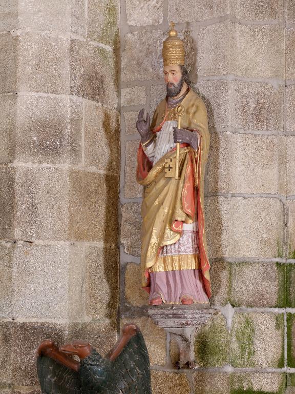 - plusieurs statues anciennes en bois polychrome représentant notamment saint Pierre et saint Yves (17e siècle), saint Guillaume, saint Efllam, saint Herbot et sainte Barbe.