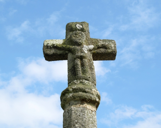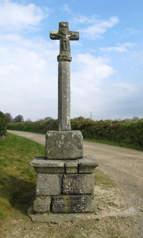 Croix de chemin située à un carrefour au nord de la chapelle Saint-Gildas et figurant sur le cadastre de 1835. Il s'agit d'une croix en granite composée d'un soubassement avec table moulurée portant un socle cubique aux angles abattus sur lequel repose un fût de section octogonale à base carrée sommé d'un chapiteau mouluré et d'une croix. A l'avers, représentation du Christ en croix mort ; au revers, une Vierge à l'enfant. Cette croix est datable du 18e siècle.
