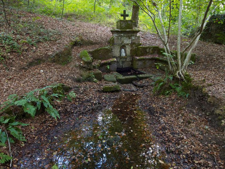La fontaine a été restaurée en 1997 par des scouts qui ont érigé une croix sur cette dernière. A proximité de la fontaine, un bloc de granite servait autrefois de lieu de prière pour invoquer la Vierge à l'intention des enfants qui tardaient à marcher. L'eau de cette fontaine avait en effet la réputation faire marcher les enfants plus tôt.