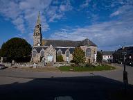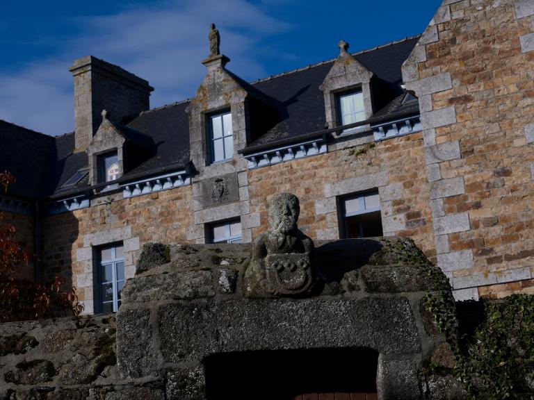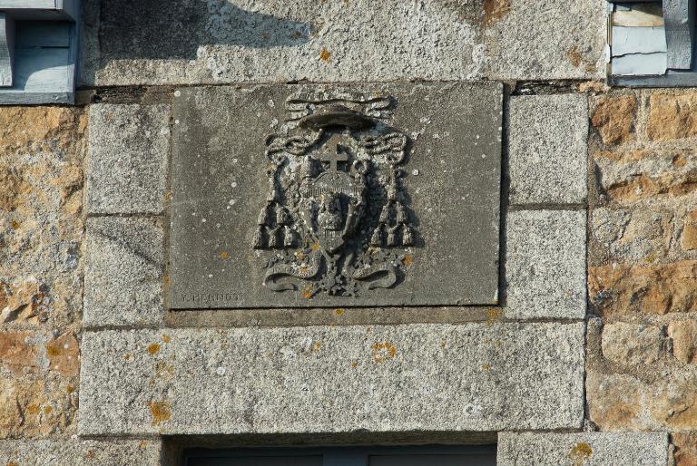 Grand presbytère daté par millésime de l'année 1876 sur le fronton de la lucarne centrale ; l'inscription l'accompagnant est malheureusement en partie illisible : "F : F : P : Y : M : DROMAGOET [...]". Cette même lucarne est surmontée d'une statue de Saint Joseph ; les armoiries ont été réalisées par le sculpteur lannionnais Yves Hernot. La porte de service située entre l'église paroissiale dédiée à Saint-Pierre et le presbytère est surmontée d'un buste d'homme portant des armoiries.