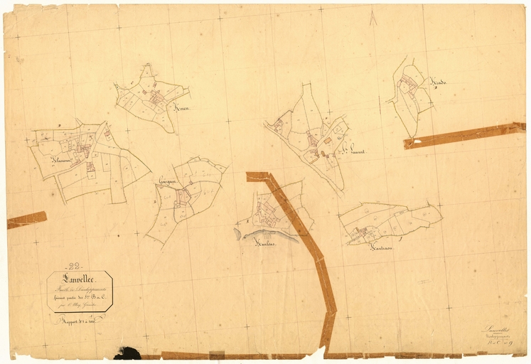 20112205470NUCA : Cadastre - Cadastre ancien, commune de Lanvellec, 1 tableau d'assemblage et 10 feuilles, 1813 - Archives départementales des Côtes-d'Armor - A1.