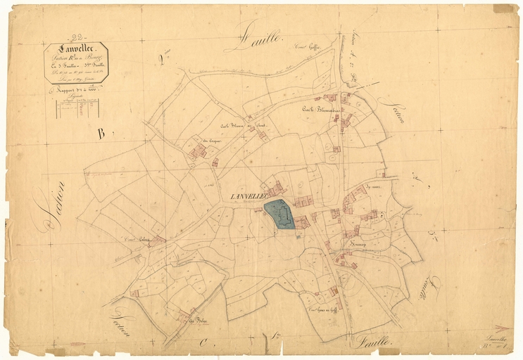 20112205500NUCA : Cadastre - Cadastre ancien, commune de Lanvellec, 1 tableau d'assemblage et 17 feuilles, 1848 - Archives départementales des Côtes-d'Armor