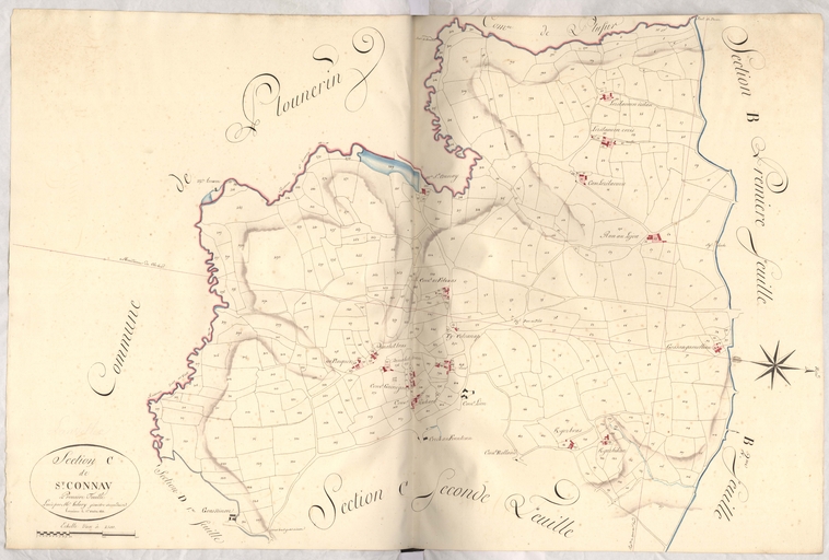 20112205494NUCA : Cadastre - Cadastre ancien, commune de Lanvellec, 1 tableau d'assemblage et 17 feuilles, 1848 - Archives départementales des Côtes-d'Armor - Développement des feuilles B et C.
