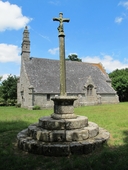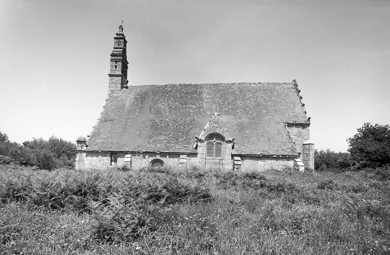Chapelle isolée, située dans un enclos avec croix. Edifice de plan rectangulaire, à chevet plat, couvert d´un toit basses gouttes en ardoises des Monts d´Arrée sur pignons découverts, parement en grand appareil de pierre de taille de granite. Clocher mur à trois chambres de cloches ajourées superposées, accostées de rouleaux et ornées d´une courte flèche en acrotère. Pignon ouest percé d´une porte plein cintre encadrée de pilastres supportant un entablement formant larmier et un fronton en accolade orné de trois calices. Nef à deux vaisseaux de trois travées, bas-côté sud terminé par une sacristie, couverte d´un lambris de couvrement en berceau avec sablières sculptées représentant des scènes de chasse et entraits à engoulants. Sol couvert de dalles de granite.