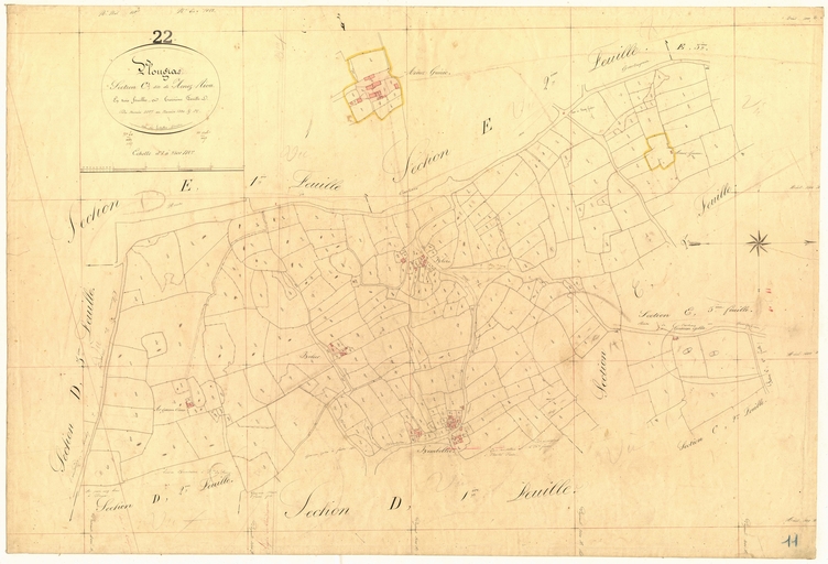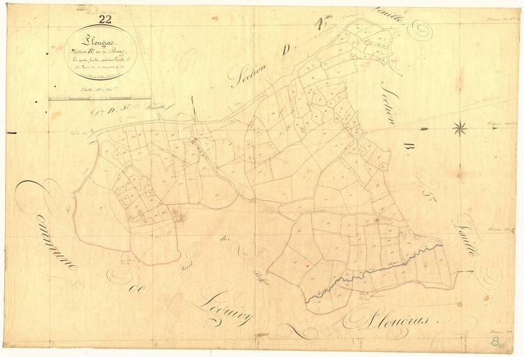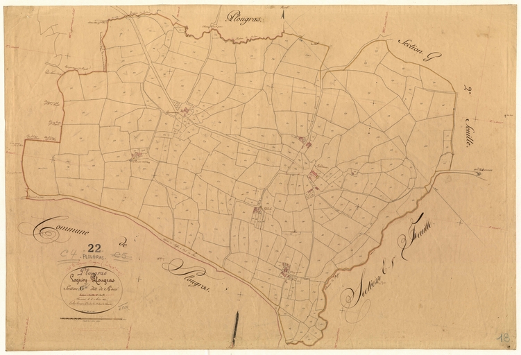 Son revenu cadastral est de 24 469 francs 94 centimes et son revenu vrai de 40 783 francs soit 3/5 pour proportion entre ces deux nombres. [...] Le territoire de la commune de Plougras est productif et assez bien cultivé. Ses landes devraient être défrichées. [...] Son bureau de poste est Belle-Isle-en-Terre. Le facteur ne visite cette commune que tous les deux jours" (sources : OGEE, Jean. 1853 ; JOLLIVET, Benjamin-Philibert. 1856).