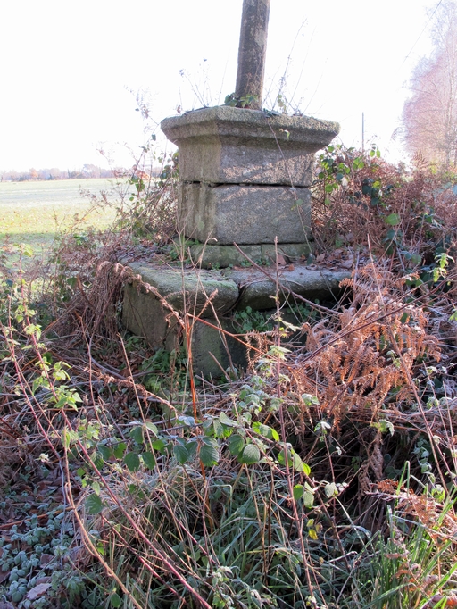 Emmarchement, piédestal et socle de plan carré à table débordante moulurée, fût à base carrée puis octogonale à écot portant une croix sommitale en granite à double face. Christ en croix représenté mort et Vierge à l’enfant (?). Édifice en mauvais état : emmarchement envahi par la végétation, fût penché et croix sommitale très érodée.