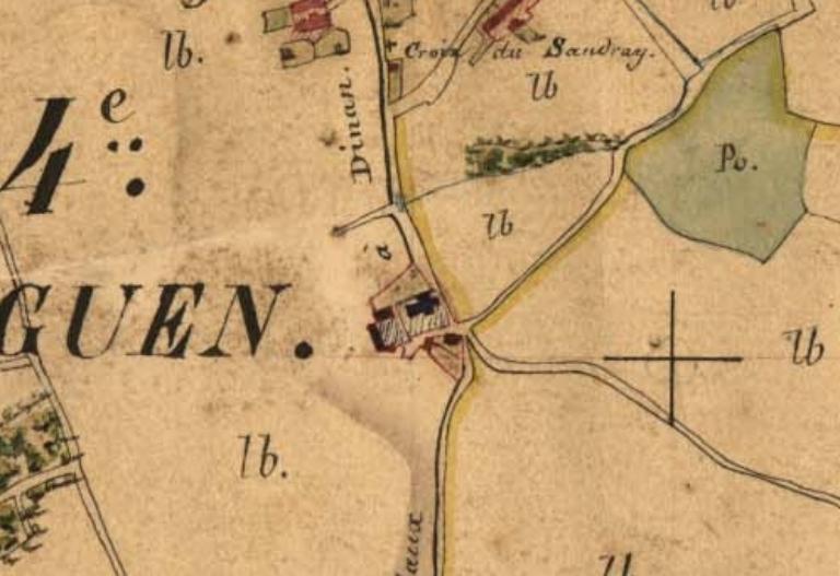 Le bourg réduit à quelques édifices s’est développé tardivement comme en témoignent les cadastres de 1810 et de 1843 qui ne présentent pas encore de bâti en dehors de l’église paroissiale et du presbytère. La mairie école, édifiée entre 1857 et 1864, amorce les premières constructions qui vont structurer l’organisation et la mise en place d’un nouveau centre communal. Une deuxième école pour les garçons sera élevée plus au sud entre 1884 et 1887 par l’architecte Jousseaume de Dinan. La construction de ces édifices publics s’accompagne de création de nouvelles maisons, le plus souvent avec commerce. Elles reprennent les mêmes caractéristiques architecturales : gros œuvre en granite, chaînages harpés des angles et des encadrements de baies, corps central accosté d’une ou de deux annexes plus basses, élévations régulières des façades ponctuées de lucarnes dont la majorité sont à frontons courbes et rappellent le style des ingénieurs de Dinan et Saint-Malo.