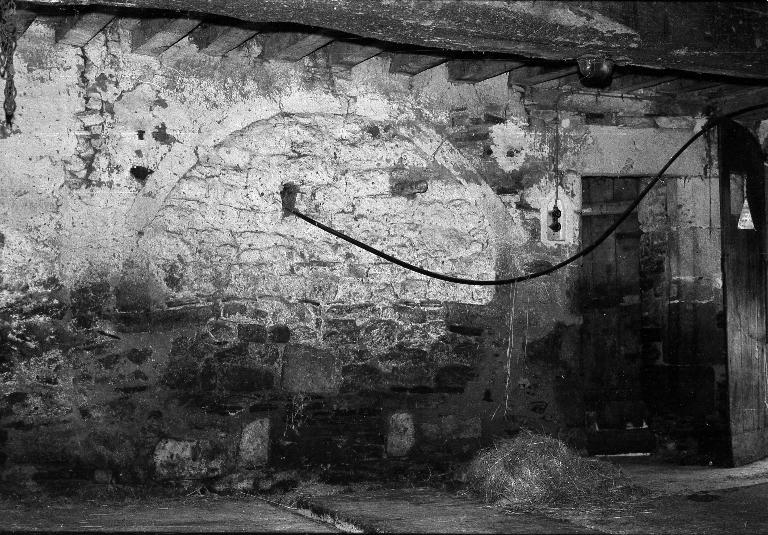La distribution actuelle ne correspond pas à celle d’origine. Cependant, le premier logis de l’ouest, plus récent conserve une bonne lecture, une seule pièce en rez-de-chaussée, appelée la salle surmontée d’un grenier accessible par une porte haute. Le logis du centre élevé majoritairement en granite est celui du chapelain. Il comprend une grande pièce, la salle, qui était autrefois éclairée par une fenêtre unique. Elle a conservé une monumentale cheminée de granite dont le linteau est gravé d’un calice encadré d’un soleil et d’une hostie, le tout entouré d’une accolade gothique à redents. L’escalier pouvait autrefois se tenir dans l’angle sud-ouest et desservir la chambre de l’étage. Son aménagement est particulièrement soigné, l’ébrasement intérieur de la fenêtre est garni de coussièges et le mur gouttereau nord est creusé d’un vaisselier droit à évier et deux tablettes. La gerbière qui est placée au-dessus de l’entrée de la salle a été ouverte postérieurement afin d’aménager une partie de l’étage en grenier.