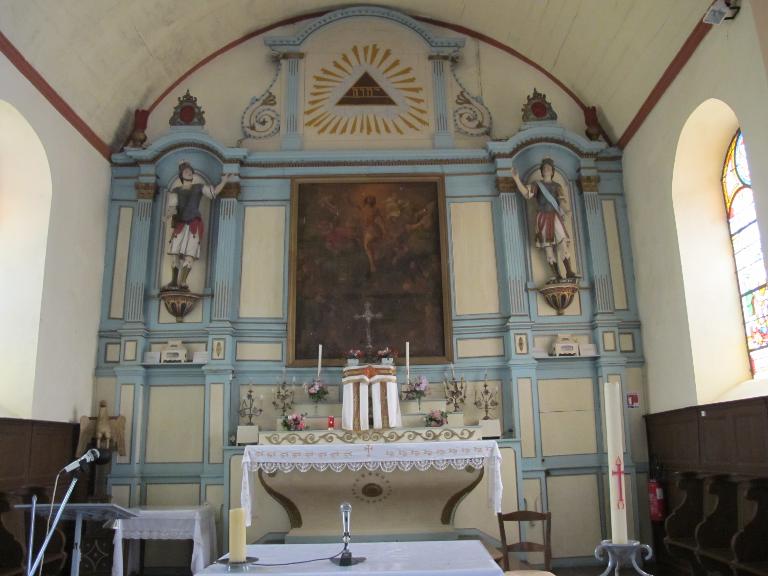 Les cadastres de 1810 et 1843 font apparaître la situation isolée de l’église à un carrefour de communication au nord de la commune. A cette période le bourg ne s’est pas encore développé. L’église orientée à l’est présente un plan traditionnel en croix latine, à chevet plat, un seul vaisseau recouvert d’une charpente lambrissée avec un clocher en bas de nef. Le cimetière se développe au sud à l’intérieur d’un enclos. Les plus anciennes pierres tombales ont été réemployées en marches d’escalier de la sacristie et en dallage de sol de la nef.Traces de remontage de la partie haute des murs de la nef.Dans l’enclos sont installés, au nord une croix de mission, au sud le monument aux morts.