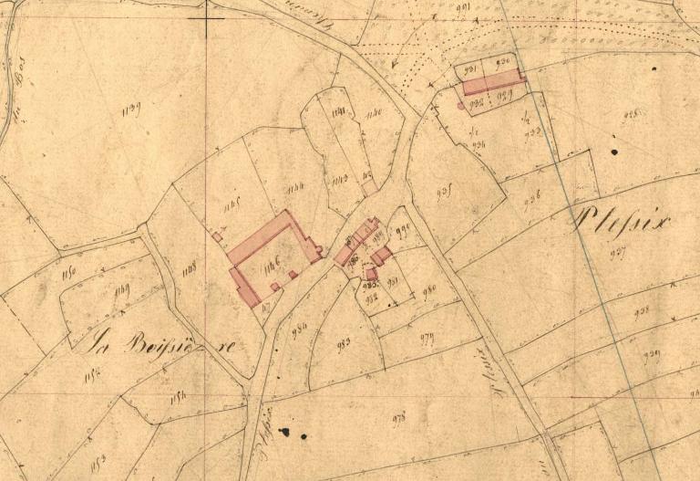 Le logis et ses dépendances forment un plan en U. Les ailes latérales de dépendances ont été réduites depuis le relevé du plan cadastral de 1843.