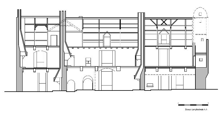 La grande salle, au centre, est accessible depuis la cour par une belle porte moulurée en plein-cintre. Eclairée par une très grande fenêtre a ébrasement qui diffuse la lumière, la salle est chauffée par une monumentale cheminée qui porte sur son linteau des armoiries d’alliance des familles Ferron et Troussier. La porte nord aujourd’hui murée accédait à l’aile arrière où se situait le cellier.