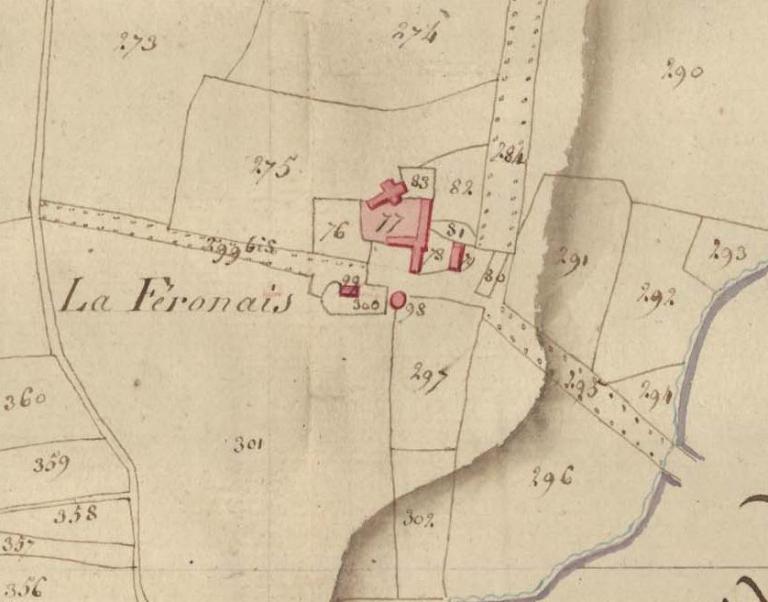 Le cadastre napoléonien de 1810 représente l’ancien environnement du manoir, communs, colombier, vivier, cour fermée et ses trois accès, ouest, nord et est qui ont été supprimés au profit d’une nouvelle allée au nord. La comparaison entre les plans de 1810 et de 1843 montre globalement la même disposition des lieux. Par contre, une excroissance visible à l’arrière du logis du manoir, au nord sur le cadastre de 1810, représente une aile disparue.