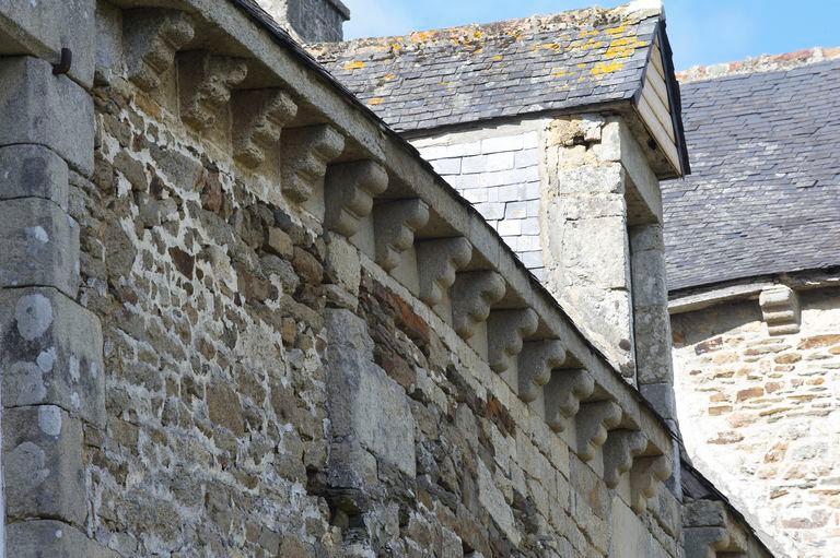 Le logis orienté sud-est présente une hétérogénéité de matériaux, granite, schiste et faluns. La pierre des faluns extraite des carrières proches de Tréfumel ou du Quiou est principalement employée dans la corniche, lucarne et souche de cheminée et dans la tourelle d’angle en surplomb.