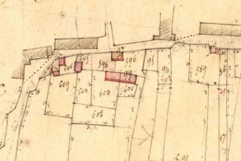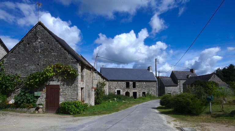 Le bâti actuel plus dense au nord du chemin communal est composé de cinq alignements de logis, au sud une seule ferme avec des dépendances. L’habitat présente des témoignages du 17e siècle mais il a été majoritairement reconstruit au début du 19e siècle. Le granite exploité a proximité a permis la construction d’un habitat en pierres, en moellons pour le gros œuvre, la pierre de taille étant principalement utilisée pour les encadrements des ouvertures. Les maçonneries ne sont pas recouvertes d’un enduit, seul un bandeau peint court sous la toiture et souligne l’architecture des maisons du début du 19e siècle. L’organisation ancienne du bâti composée de plusieurs logis alignés a été maintenue, au devant de la maison se situe la rue ou la cour qui possède un droit de passage, à l’arrière le tracé de jardins parfois plus vastes trahit des subdivisions du logis.