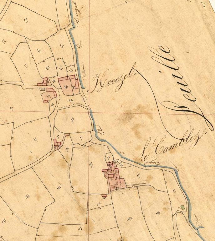 Elle renferme 93 maisons [constructions diverses : 81 en 1853], 3 moulins à eau [Moulin Coz et Moulin Guionnet en 1835] Son revenu cadastral est de 8 766 francs 61 centimes et son revenu vrai de 17 533 francs soit 1/2 pour proportion entre ces deux nombres" (source : JOLLIVET, Benjamin-Philibert. 1859).