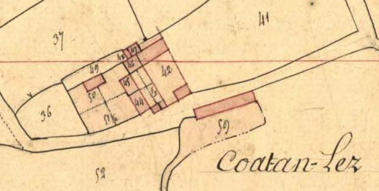 "Coat-an-Lez" signifie littéralement en breton "le bois de la cour", il est aujourd'hui orthographié : "Coat an Lay". Il a appartenu à la famille Trolong au 16e siècle. Cet ensemble bâti ancien, à la fois résidence seigneuriale et exploitation agricole, se signale toujours par des armoiries (martelées à la Révolution, elles semblent cependant représenter une couronne...) et une porte en plein cintre, ornée, datable de la 2e moitié du 16e siècle.