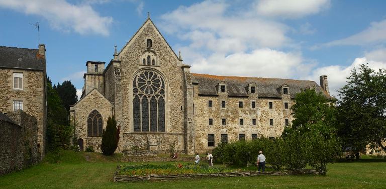 Quant aux différents bâtiments de l’abbaye, ils rendent compte de multiples campagnes de travaux. L’église abbatiale très restaurée à la fin du 19e siècle s’inspire pour son voûtement des premières expériences angevines, elle est édifiée entre la fin du 12e siècle et le premiers tiers du 13 siècle. Elle était probablement fortifiée comme l’indiquent les vestiges d’anciens arcs mâchicoulis. Le réfectoire de la première moitié du 13e siècle est un témoin majeur de la diffusion en Bretagne du gothique rayonnant. Il a été restauré par les monuments historiques entre 1987 et 1991. Les volumes initiaux ont été restitués ainsi qu’une partie du décor mural peint du Moyen Age. La chaire du lecteur intégrée au fenestrage est une réalisation du 14e siècle des plus remarquables. Mémorables sont également les vitraux contemporains réalisés par Gérard Lardeur qui finalisent avec adresse la restauration du réfectoire. Le cloître et les bâtiments conventuels sont reconstruits par les mauristes vers les années 1670. Ils reprennent le style plus austère de cette période : piles carrées sobrement moulurées et arcades en plein-cintre non ornées, pour le cloitre, et au droit des fenêtres des bâtiments conventuels, d' élégantes lucarnes à fronton courbe ou triangulaire, forment les seuls ornements ostensibles des façades, autrefois enduites.