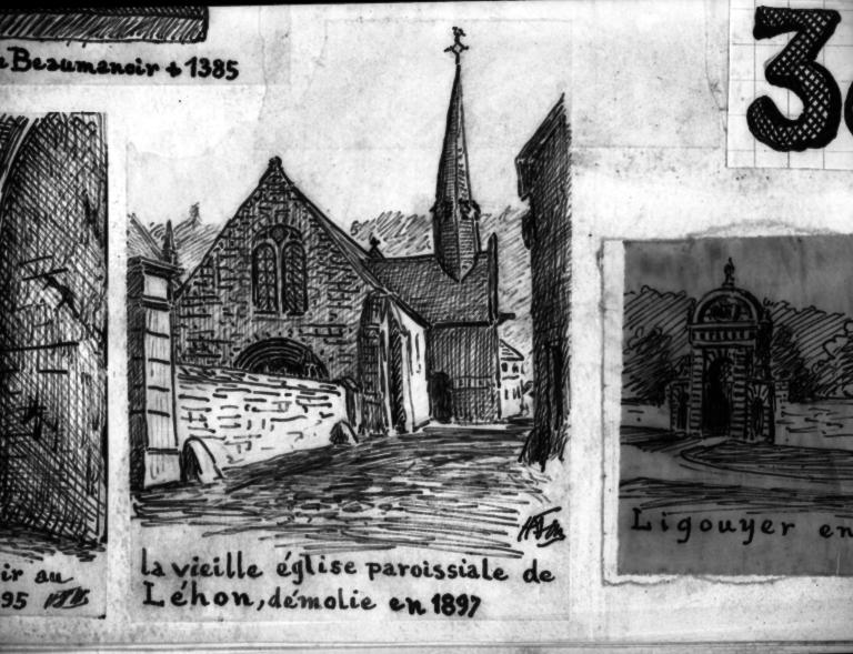 Dans ses notes de voyage écrites en 1836 Prosper Mérimée mentionne les ruines de l’abbaye de Léhon : « A un quart de lieue de Dinant, au village de léhon, on trouve les ruines d’une abbaye célèbre. ( …). L’église n’a point d’abside, et je ne pense pas que sa suppression tienne à quelques réparations modernes. Elle n’a qu’une nef bordée de chaque côté par des niches qui renfermaient des tombeaux. Dans la Révolution ils ont été ouverts, leurs statues brisées ; on en trouve des fragmen(t)s dispersés dans les ronces et les mauvaises herbes qui couvrent le sol (…). Au sud de l’église est une chapelle célèbre dans le pays, comme renfermant les tombeaux des seigneurs de Beaumanoir (…). On n’y trouve aujourd’hui que cinq pierres sépulcrales fort mutilées ». « A une porte de fusil de l’église, s’élève le château de Léhon (…). Le couronnement des murs est détruit, et dans l’enceinte on cultive aujourd’hui du sarrasin ».