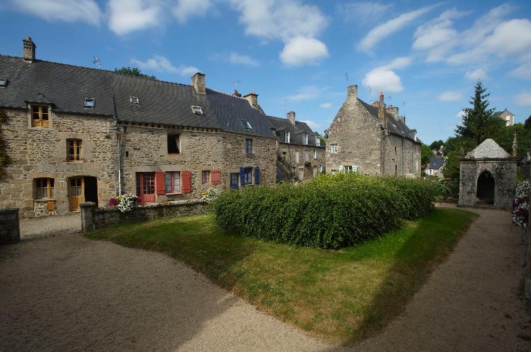 La plupart des maisons du bourg sont également reconstruites pendant cette période prospère qui se maintient au 18e siècle comme l’atteste quelques dates portées sur les maisons du bourg : 1705, 1749, 1766. Les maisons à boutique, reconnaissables à l’appui saillant de leur fenêtre extérieure, de manière à former une tablette propre au commerce, se regroupent dans la grande rue, unique artère commerçante. Plusieurs marchands tisserands habitent le bourg à la fin du 18e siècle, c’est le cas de la famille Amelot, François Aubry, Noël Bellay, Jean Flageul, Alain Robert, Louis Rouxel, Nicolas Ruquay… La plupart des tisserands de la commune se regroupent en corporation autour d’un entrepreneur fabricant. Macé Charmel, Jean Charmel, Yves et Guillaume Tombrel, se disent tisserands pour Aubry..