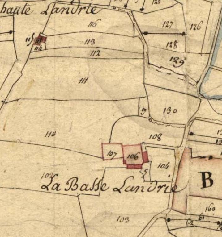 Hormis une partie de sa couverture en éternit, le logis de la ferme de la Basse Landrie présente un bon état d’authenticité. Il est caractéristique de la maison mixte bretonne à deux pièces par niveau. Le rez-de-chaussée abrite une étable qui communique avec la salle, l’étage présente également une partition mixte, une chambre et un grenier pour le stockage des denrées. Ce regroupement traditionnel pratique facilite la surveillance des biens de la ferme. Les parties habitables ne sont pas superposées, d’où son appellation typologique dite à fonctions croisées (logement et exploitation). La présence d’une chambre chauffée à l’étage indique une certaine aisance. La ferme serait reconstruite sur un lieu noble.