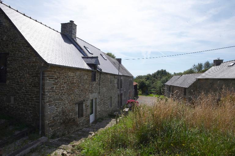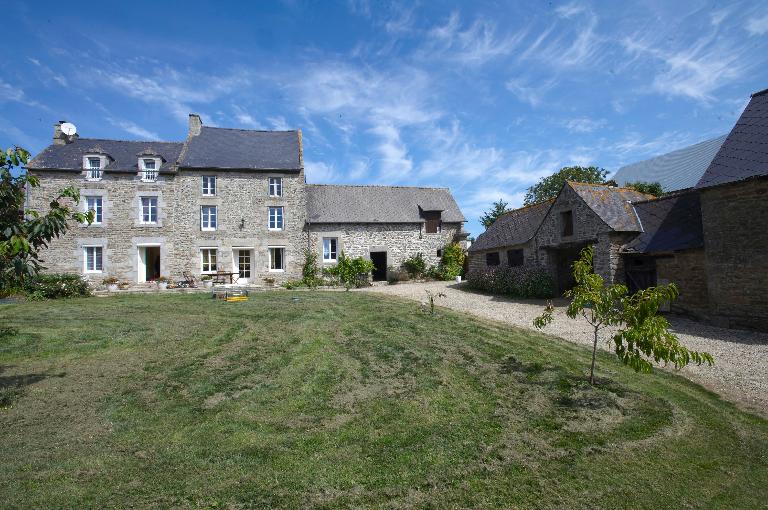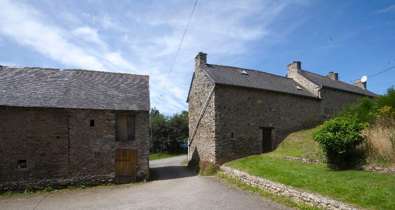 Cette ferme située plus au nord, présente quant à elle une organisation différente et des campagnes de constructions plus anciennes pouvant remonter à la fin du 16e siècle ou au début du 17e siècle. Le logis bien que modifié par des modifications d’usage, s’apparente aux logis rencontrés sur le territoire de la Rance à trois pièces au sol. La présence à l’étage d’une chambre haute est attestée par une fenêtre qui cohabite avec une gerbière à usage de grenier. La mixité des fonctions du logis qui regroupe une partie habitation et une partie exploitation ou de stockage est courante pour cette période et correspond à des usages fonctionnels afin d’assurer la protection et la surveillance des possessions de la ferme, troupeau ou autre source de revenu et récoltes aux greniers.