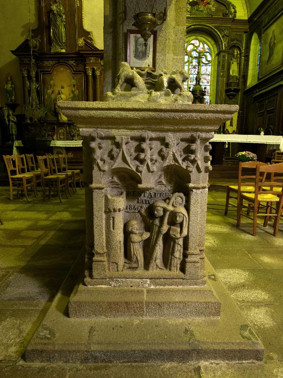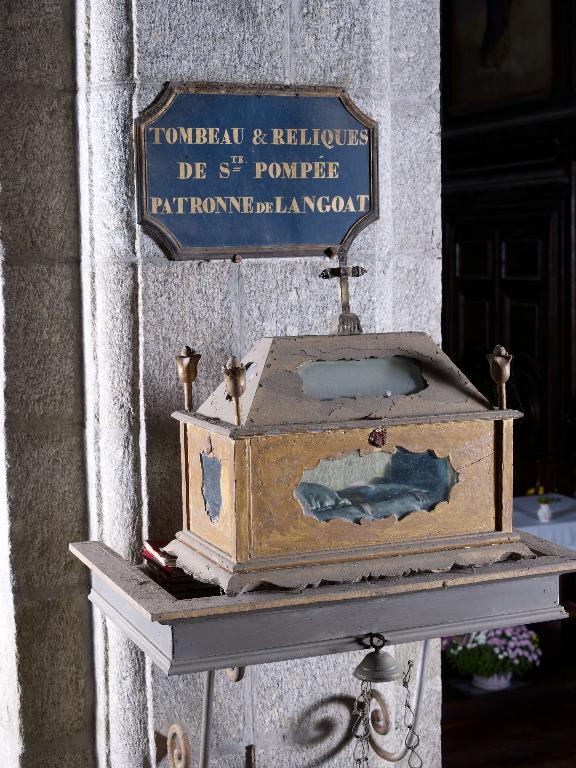 Les restes mortels de sainte Pompée ont été déplacés en 1370 dans un tombeau faisant mausolée ; il a été ouvert en 1768 à la demande de l'évêque de Tréguier afin d'authentifier les ossements de la sainte et de prélever des reliques. L'église paroissiale a été reconstruite en 1771. Le tombeau de sainte Pompée a été classé au titre objet en 1911.