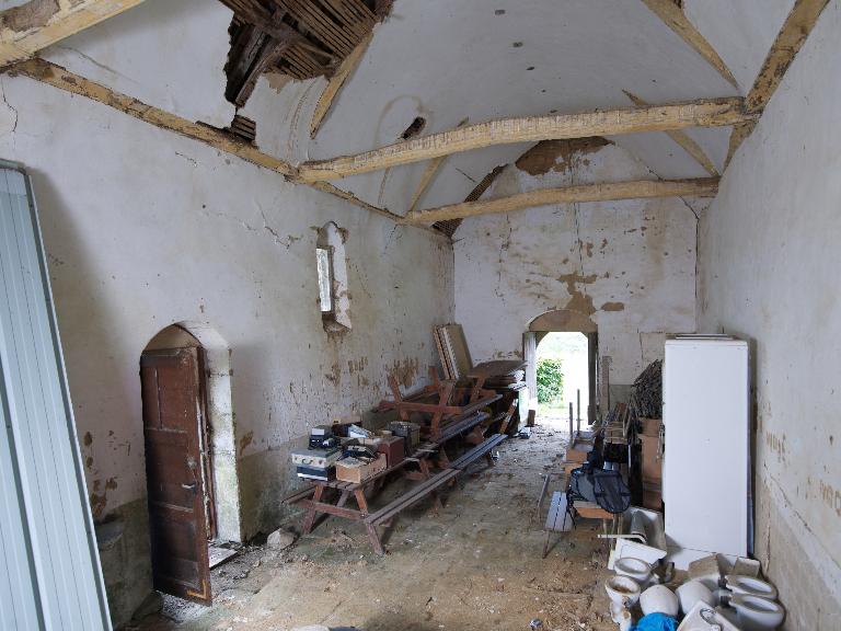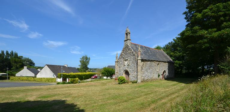 Chapelle seigneuriale construite en 1592 (date portée dans les armoiries du pignon ouest) et modifiée au 19e siècle. Elle a été érigée en chapelle de secours en 1804, c'est à dire qu'elle avait vocation à doubler l'église paroissiale. Elle est aujourd'hui désaffectée ; un lotissement a été construit à proximité immédiate dans les années 1990.