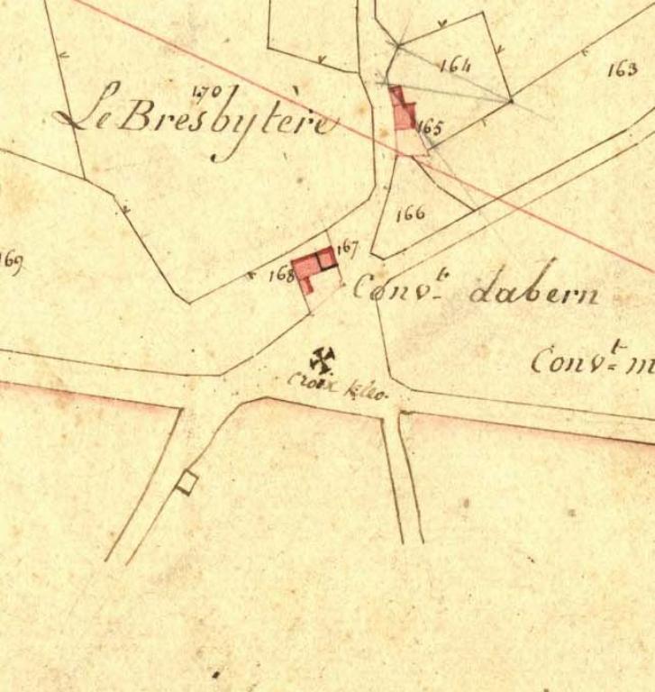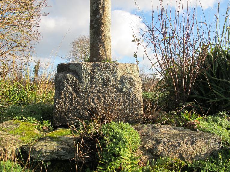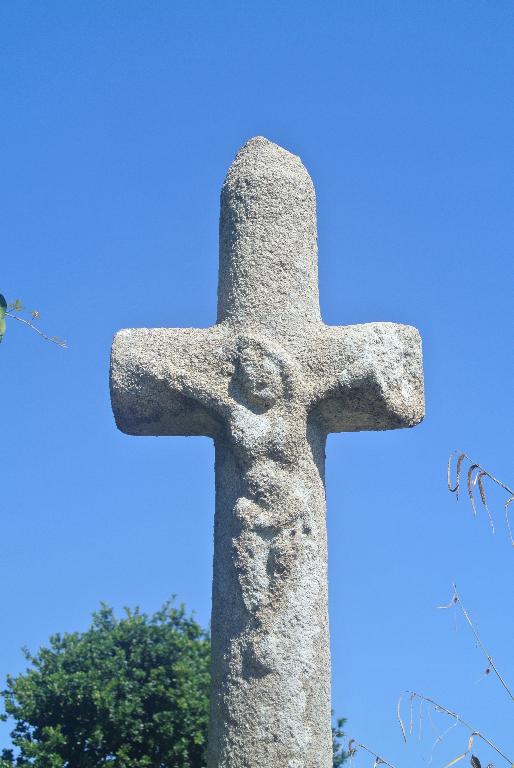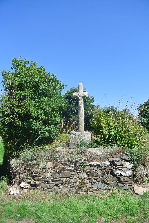 Croix érigée en limite communale, probablement au 15e siècle, figurée sur le cadastre ancien au milieu d'un carrefour sous le nom de Croix de Kerleo. Fût incomplet, peut-être brisé lors de son démontage et de son remontage au 19e siècle, à quelques mètres de son emplacement initial. Nicolas, le nom du commanditaire, est encore lisible sur le socle.
