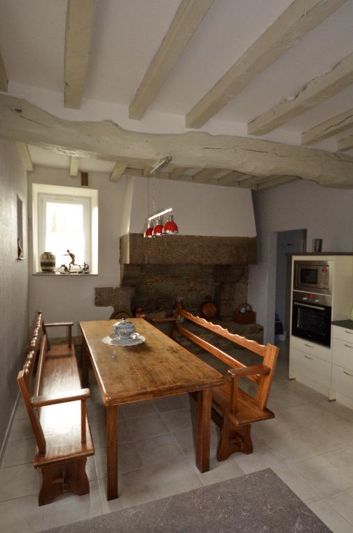 Cette ferme devenue maison a été restaurée ; on notera cependant l'absence de petits bois aux fenêtres. Discrètes, les fenêtres percées dans le pignon ouest donnent de la lumière sans pour autant nuire à l'unité architecturale de cet élément de l'architecture agricole et domestique typique du Trégor dans le secteur de La Roche Derrien.