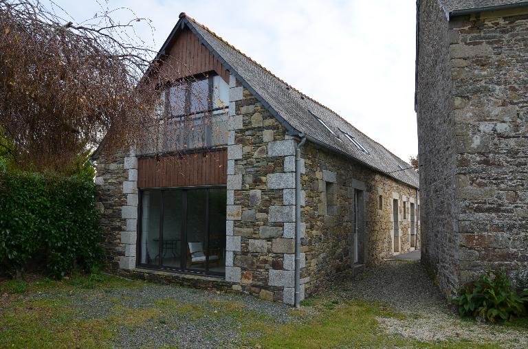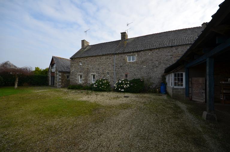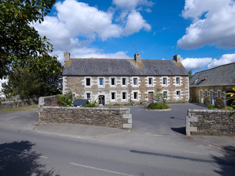 L'analyse architecturale (logis à quatre travées et baie surnuméraire), la mise en œuvre et l'analyse stylistique (linteaux en arc segmentaire et arcs de décharge en arrête de poisson ; linteau de porte en plate-bande ; souches de cheminée moulurées) permettent de dater le logis ouest des années 1780-1810 ; il a été agrandi vers l'est entre 1836 et les années 1850 en employant des pierres de taille de granite clair en encadrement des ouvertures. Les pierres d'angles en granite gris de l'ancien logis ouest alternant carreaux et boutisses ont été remployées. Un bâtiment en retour d'équerre part vers le nord-ouest : une grande partie de ce dernier figure sur le cadastre de 1836. L'ancien logis était dotée de quatre cheminées ; une porte donne sur l'arrière du bâtiment. Des remplois proviennent d'un édifice plus ancien vraisemblablement datable du 17e siècle (piédroits et linteaux).