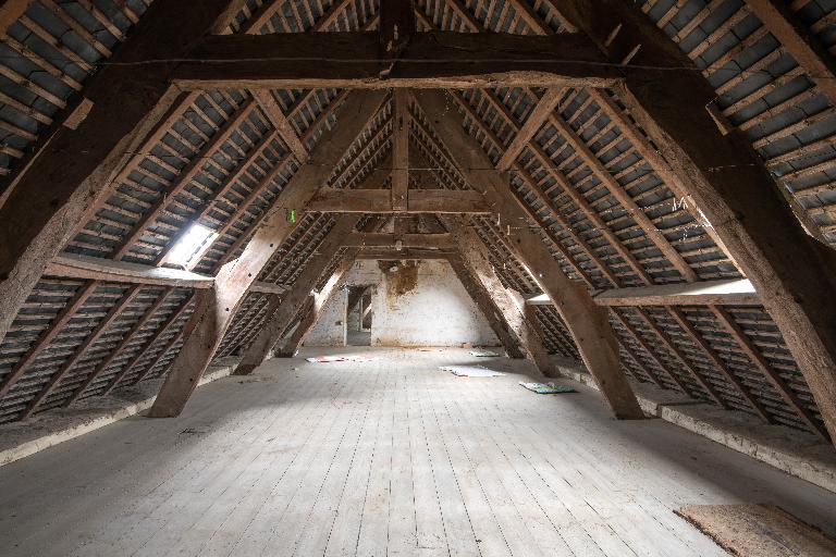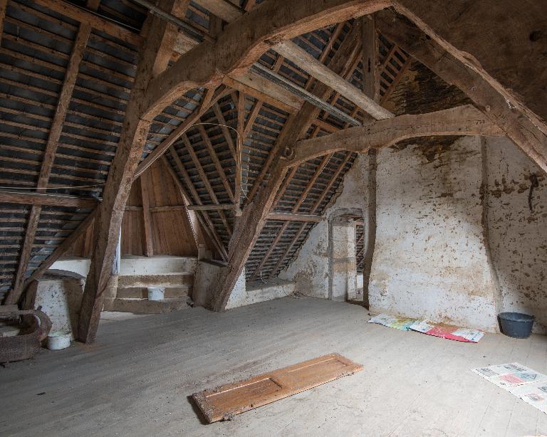L'analyse architecturale (logis à trois travées et baies surnuméraires), la mise en œuvre et l'analyse stylistique (linteaux en arc segmentaire et arcs de décharge en pierre debout ; linteau de porte en plate-bande) permettent de dater le logis ouest des années 1780-1810 ; il a vraisemblablement été construit pour Jean-Marie Le Grand.