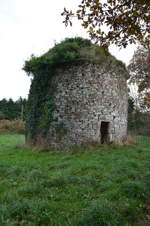 Le colombier est situé à 100 mètres au sud du logis manorial. Il est construit en moellon de granite et de schiste, couvert d'une coupole en tas de charge percée d'un jour zénithal. Le faîte du mur extérieur accueille une corniche en schiste formant larmier. A l´intérieur, les boulins ou niches, disposés en quinconce, sont formés d'une alternance de blocs de granite plus ou moins épais. Ce colombier compterait 637 trous de boulins. Une échelle tournante (disparue) permettait l´accès aux boulins.