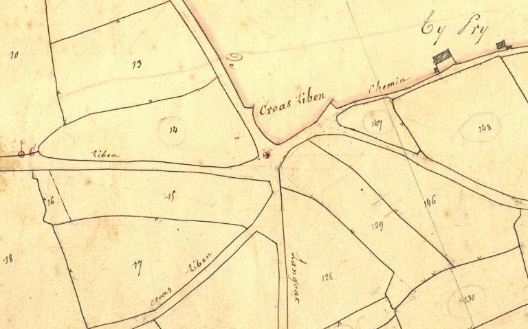 Croix de chemin vraisemblablement datable de la 2e moitié du 18e siècle. Sur le cadastre de 1835, la croix figure au milieu du carrefour et se nomme "Croas Liben", aujourd'hui Croix de Bertu.