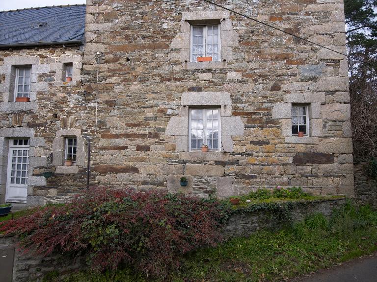 Ancienne ferme composée de deux logis construits en alignement. Couvert d'un toit en pavillon, le logis principal présente un plan massé à deux étages carrés. La mise en oeuvre à assises régulières en moellon équarri mêle schiste et schiste gréseux avec encadrements de baies et chaînes d'angle en pierre de taille de granite. Le logis secondaire de type ternaire construit en alignement, au sud, présente une maçonnerie en petits moellons irréguliers très différente.