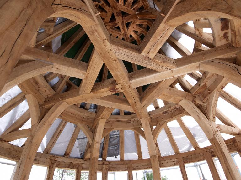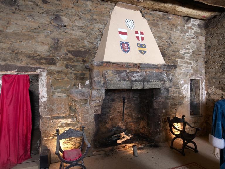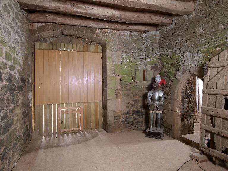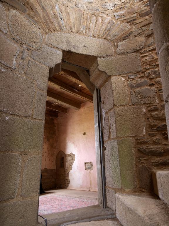 La salle et la chambre seigneuriales, aujourd'hui plafonnées, étaient à l'origine sous charpente comme le prouve la structure à fermes et pannes, liens courbes et poinçon octogonal en grande partie en place dans le comble. Une pièce haute, sans doute à pans de bois à l'image de celle de la Roche-jagu surmontait la tour d'escalier. Une autre pièce haute pourvue d'une cheminée à linteau clavé en arc segmentaire surmonte la chapelle. Cette pièce pouvait avoir un usage défensif comme semble l'indiquer une ligne de blochets sciés situés juste en dessous de la corniche qui surmonte le portail d'entrée. Ces blochets devaient porter une grande lucarne-pignon en pan de bois dont l'encorbellement au-dessus de l'entrée était maintenu par des jambes de force reposant sur deux culots sculptés de têtes humaines, reprenant un principe constructif employé à la même époque pour la coursière de la Roche-Jagu.