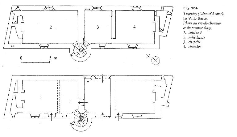 - Datation relativement haute par rapport au corpus des logis seigneuriaux bretons conservés (vers 1410-20), qualité de la mise en oeuvre et style trégorois fortement marqué (baies à trilobes évidés).