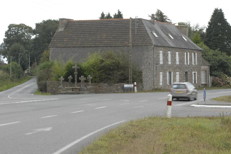 Sur le cadastre de 1826 (section B), les Cinq Croix figurent le long de la route allant de Plouaret à Lannion à vingt-cinq mètres environ de leur emplacement actuel : les croix étaient orientées vers l'est et non vers le nord. L'emmarchement primitif est toujours visible. L'ensemble a été vandalisé en 1936 puis restauré ; la croix est a été brisée lors d'un accident survenu en 1988.