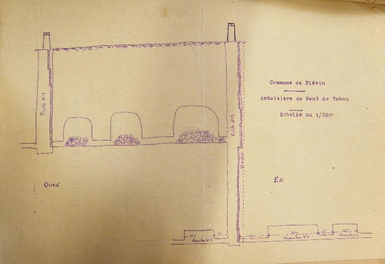 En 1921, Pierre Nicolas ouvre une ardoisière au lieu-dit : Pont de Tohou à Plévin. Il exploite certainement la même veine que l'ardoisière voisine de Tohou. Il emploie 46 ouvriers et deux puits sont creusés à 65 mètres de distance l'un de l'autre. Ils sont d'une profondeur de 30 mètres et à ce niveau une galerie est creusée pour relier les deux puits.