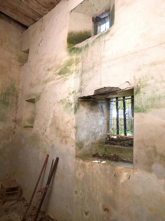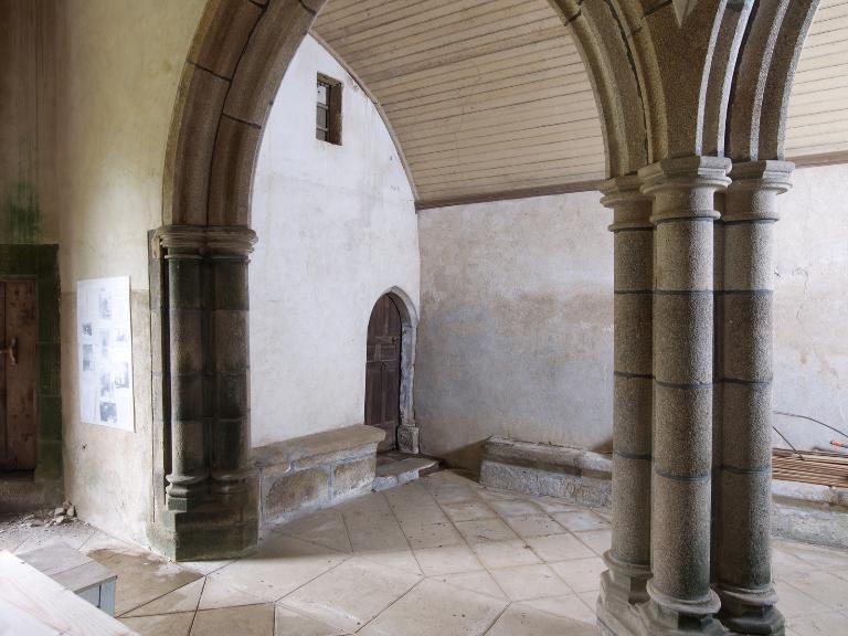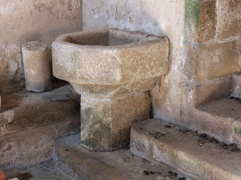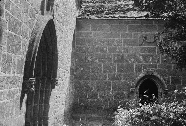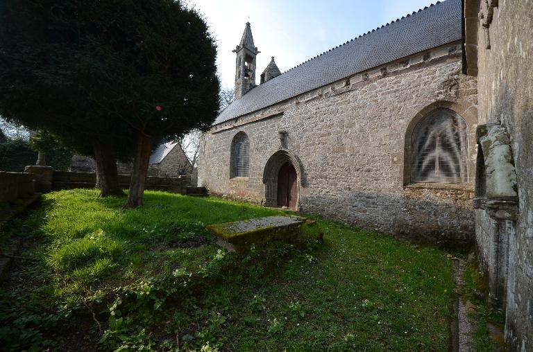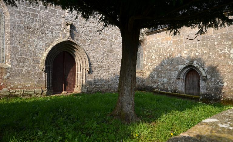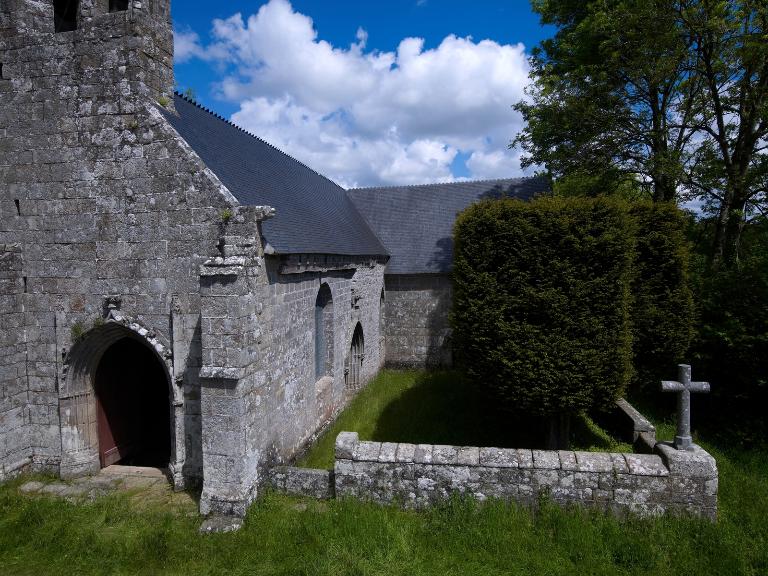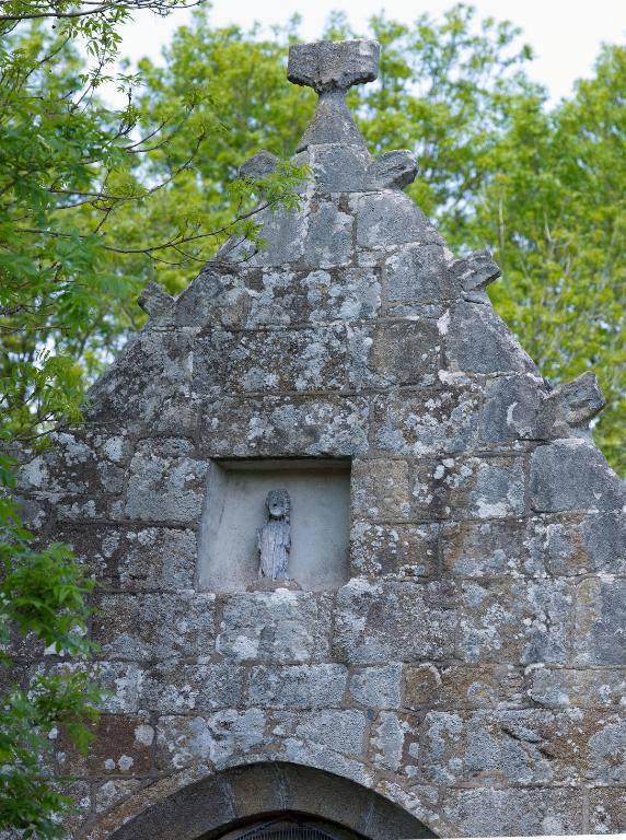 Un mur bahut et deux échaliers ferment les accès aux portes sud et ouest de la chapelle latérale ; la croix date du 19e siècle voire de la première moitié du 20e siècle.