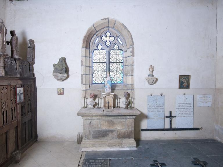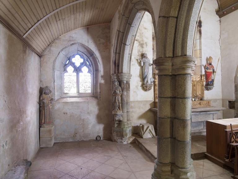 - une statue en pierre de kersanton polychrome de saint Jacques (datable du 15e siècle ou du début du 16e siècle; 1,37 m) ;