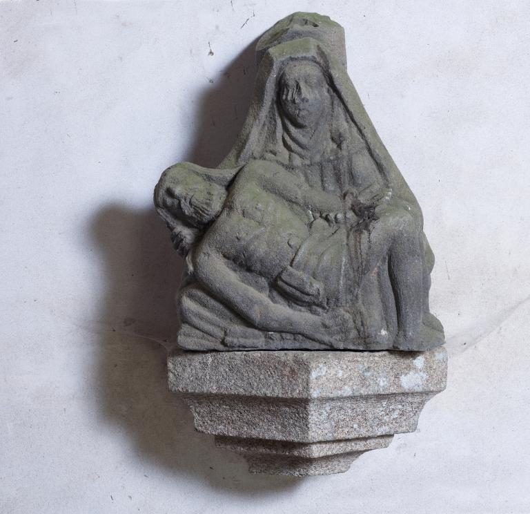- une Pietà ou Vierge de Pitié en kersanton (provenant d'une croix : ? ; 0,5 m) ;