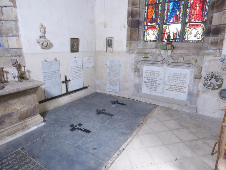 Dans la deuxième moitié du 18e siècle, le mur sud de la chapelle a été reconstruit comme en témoigne une inscription : "1775 : FAIT FAIRE PAR LE GOUVERNEUR GABRIEL LE LAN". Plusieurs armoiries ont été martelées lors de la Révolution française rendant leur identification impossible.