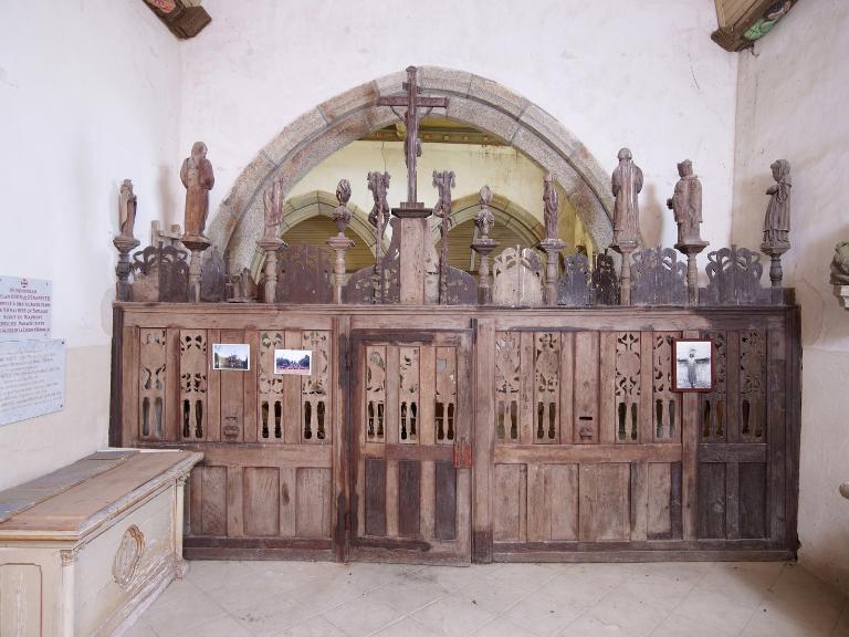 - une clôture en bois isolant la chapelle funéraire des châtelains de Kergrist (16e siècle – agrandi vers 1687-1690 ; restaurée au 19e siècle) ;