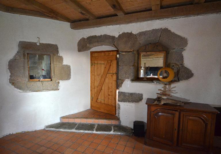 Le logis conserve des dispositions intérieures anciennes caractéristiques du manoir comme la salle basse desservant la tour d'escalier et la cuisine. Deux grandes baies percées dans le mur nord éclairent la salle et la grande cheminée. De la cuisine, un passe-plat dessert la grande salle basse tandis qu'un second passe-plat dessert les deux pièces hautes via la tour d'escalier. Les crossettes du pignon est sont sculptées de visages humains.