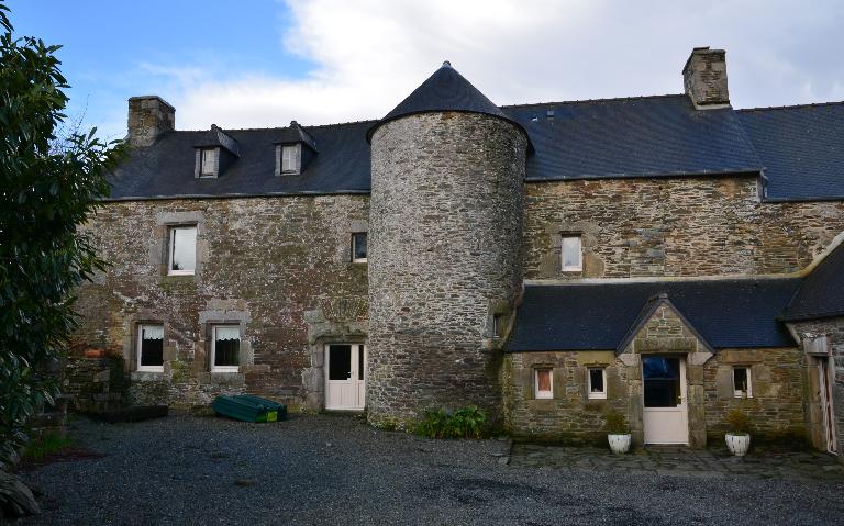 L'édifice originel est vraisemblablement datable de la première moitié du 16e siècle comme le suggère l'analyse architecturale (présence de la tour d'escalier en façade postérieure), la mise en œuvre et l'analyse stylistique (décors en accolade et griffes en entourage des baies). La porte d'entrée – au décor gothique, tournée vers le nord est flanquée par la tour qui abrite un escalier en vis en granite. Des travaux semblent avoir également été réalisés au siècle suivant.