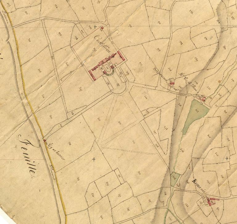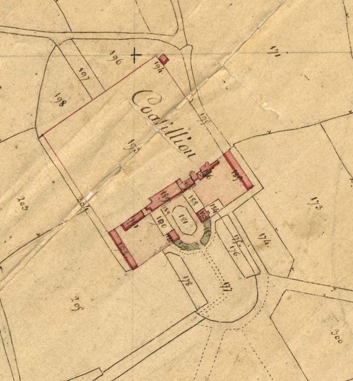 Le cadastre de 1826 figure un ensemble ordonné et symétrique organisé autour du corps de logis :