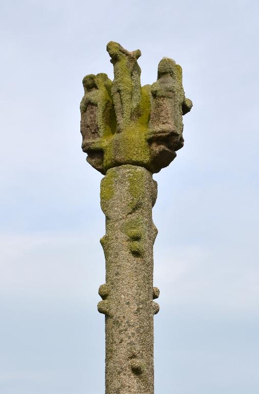 La croix de chemin est située dans le hameau de Rudunès le long du chemin menant au manoir de Kerguéréon. Croix terminale vraisemblablement datable du 16e siècle.