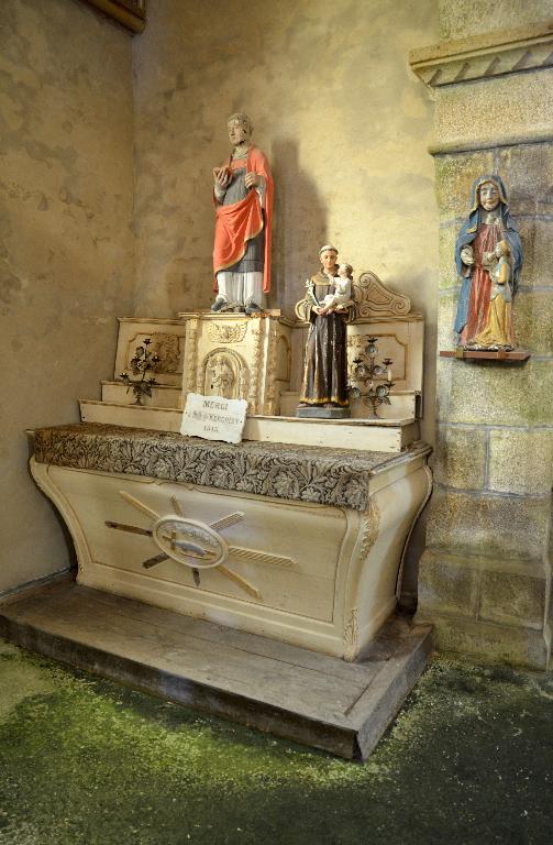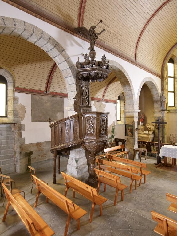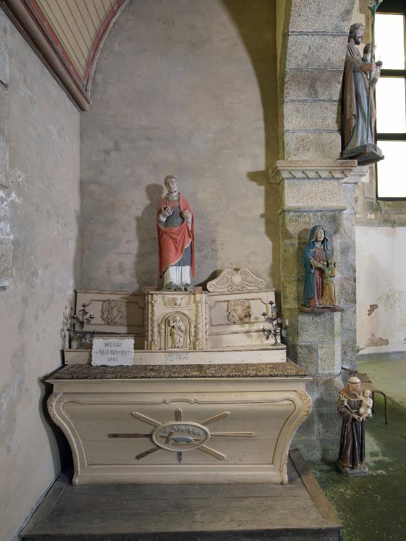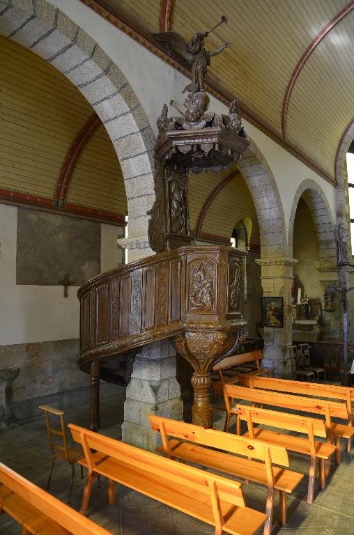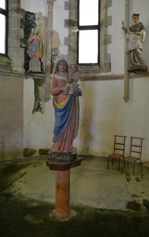 Le mobilier de la chapelle mérite une certaine attention, on compte ainsi une statue ancienne en bois polychrome de la Sainte Vierge dite Notre-Dame de Kergrist, avec son enfant, portant la date de 1615, une statue de saint Éloi (patron des maréchaux-ferrants et des forgerons, ses attributs sont : l'enclume (ici le marteau) et le fer à cheval) et de saint Yves. La chaire à prêcher est datable du 17e siècle : elle provient de l'église paroissiale de Ploubezre. Une statue de saint Jacques le Majeur, classée au titre objet depuis 1975 et propriété de la commune, est toujours répertoriée comme étant dans la chapelle de Kerauzern ; elle est en réalité exposée dans l'église paroissiale.