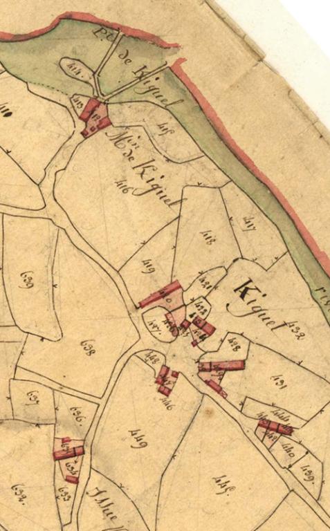 L'écart de Keriel figure sur le cadastre de 1826 associé au toponyme "K[er]iquel". C'est un hameau ancien situé en contrebas du château fort de Coat Frec. Il s'est vraisemblablement développé à un point de passage piéton sur Le Léguer en direction de Buhulien. Il comprenait une chapelle – un peu à l'écart au sud, un moulin à eau au nord et plusieurs maisons et fermes dont la construction s'échelonne de la fin du 16e siècle au début du 20e siècle. Une majorité de ces logis date des années 1810-1825. Deux logis en alignement utilisent des briques en entourage des ouvertures, ces transformations sont datables des années 1880-1910. Les logis sont tous orientés vers le sud ou le sud-est. Une fontaine est datée 1874.