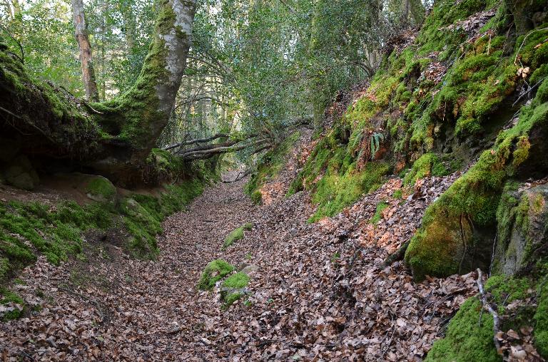 Un chemin creux mène des vestiges du château fort de Runfao au moulin de Kergrist.